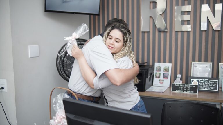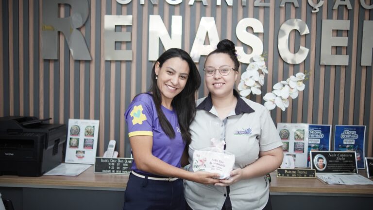 Logo pela manhã, o clima já era de festa. As secretárias da equipe foram surpreendidas com lembrancinhas especiais entregues pessoalmente pelos diretores da Organização Renascer. Mais do que simples presentes, cada lembrança carregava uma mensagem profunda de reconhecimento pelo trabalho dedicado e competente que essas profissionais prestam diariamente no atendimento à população.