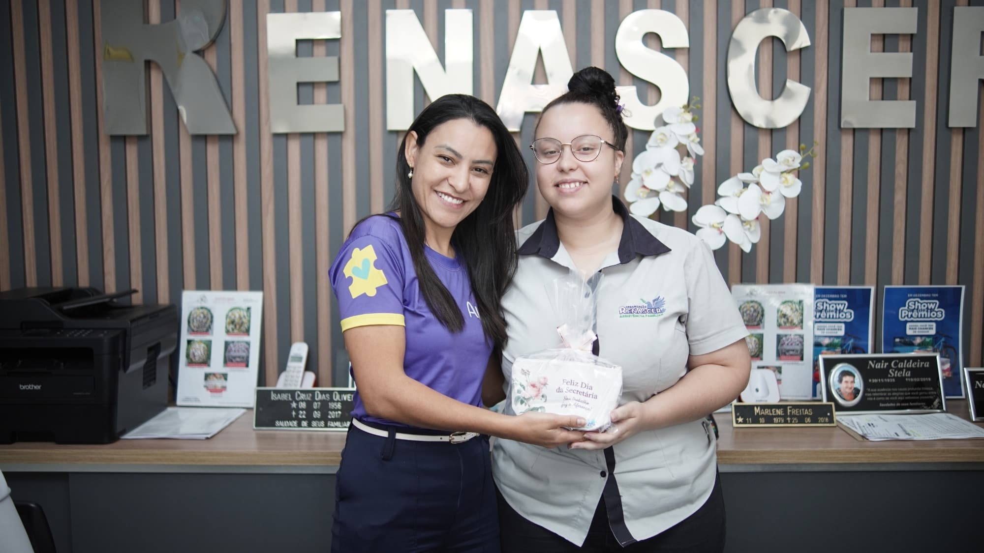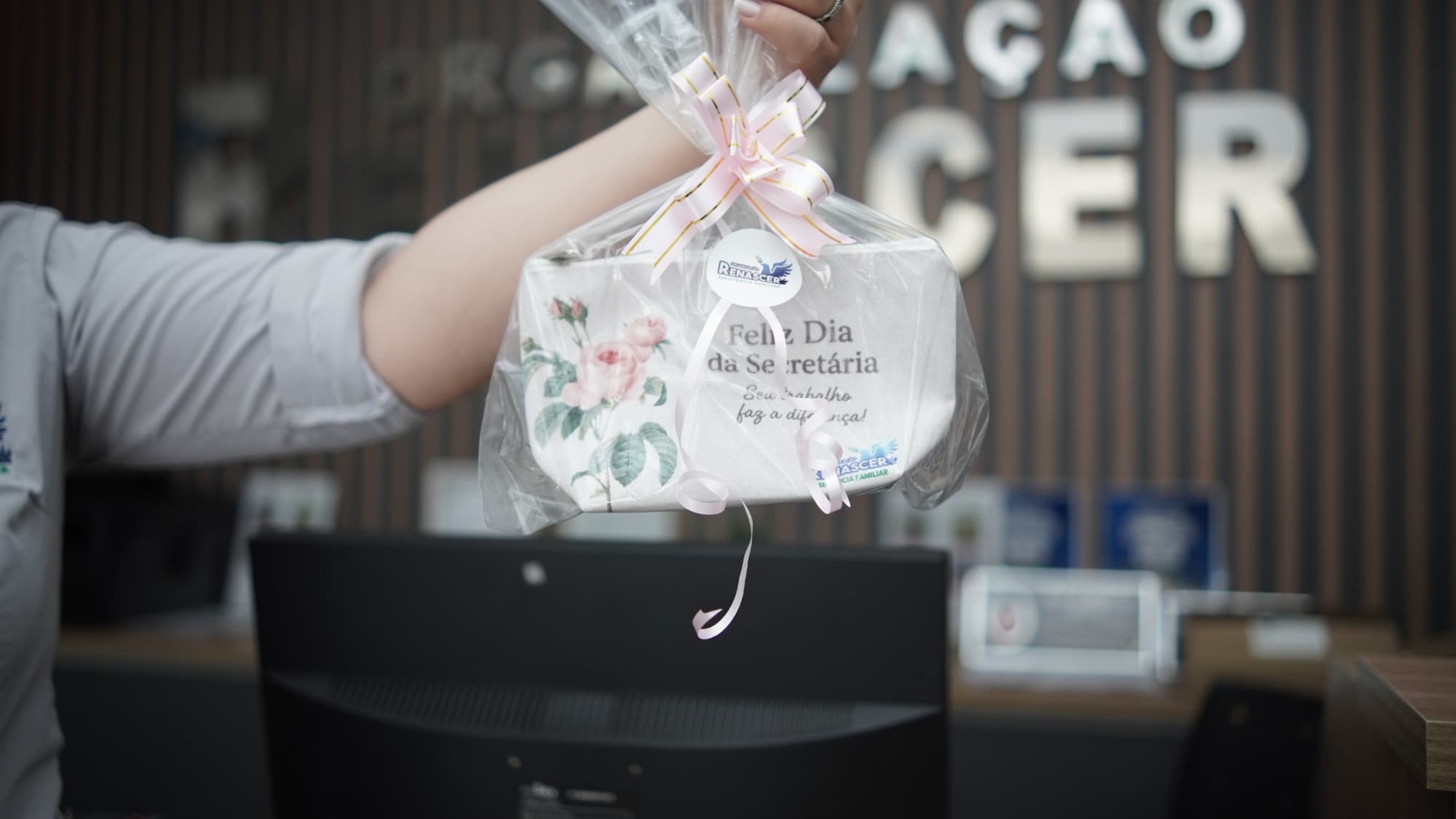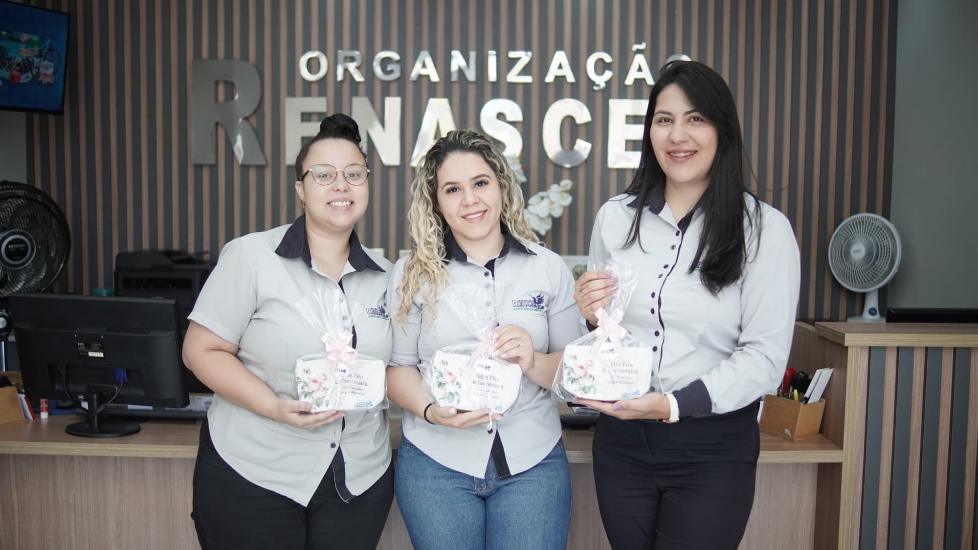 Logo pela manhã, o clima já era de festa. As secretárias da equipe foram surpreendidas com lembrancinhas especiais entregues pessoalmente pelos diretores da Organização Renascer. Mais do que simples presentes, cada lembrança carregava uma mensagem profunda de reconhecimento pelo trabalho dedicado e competente que essas profissionais prestam diariamente no atendimento à população.