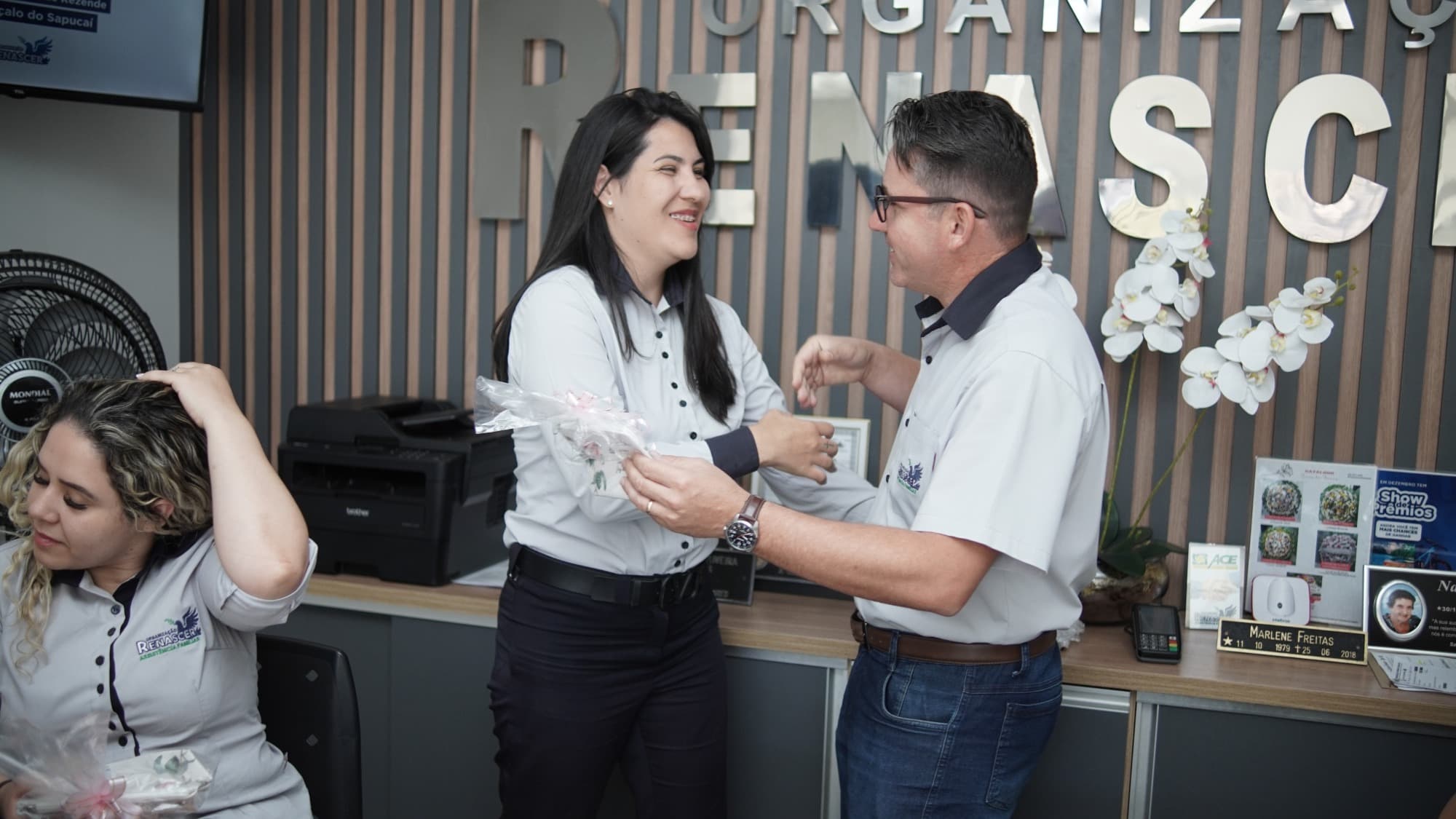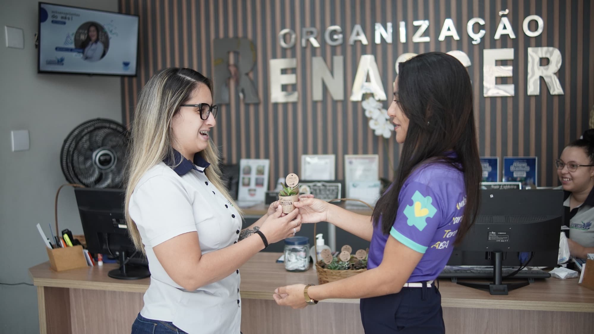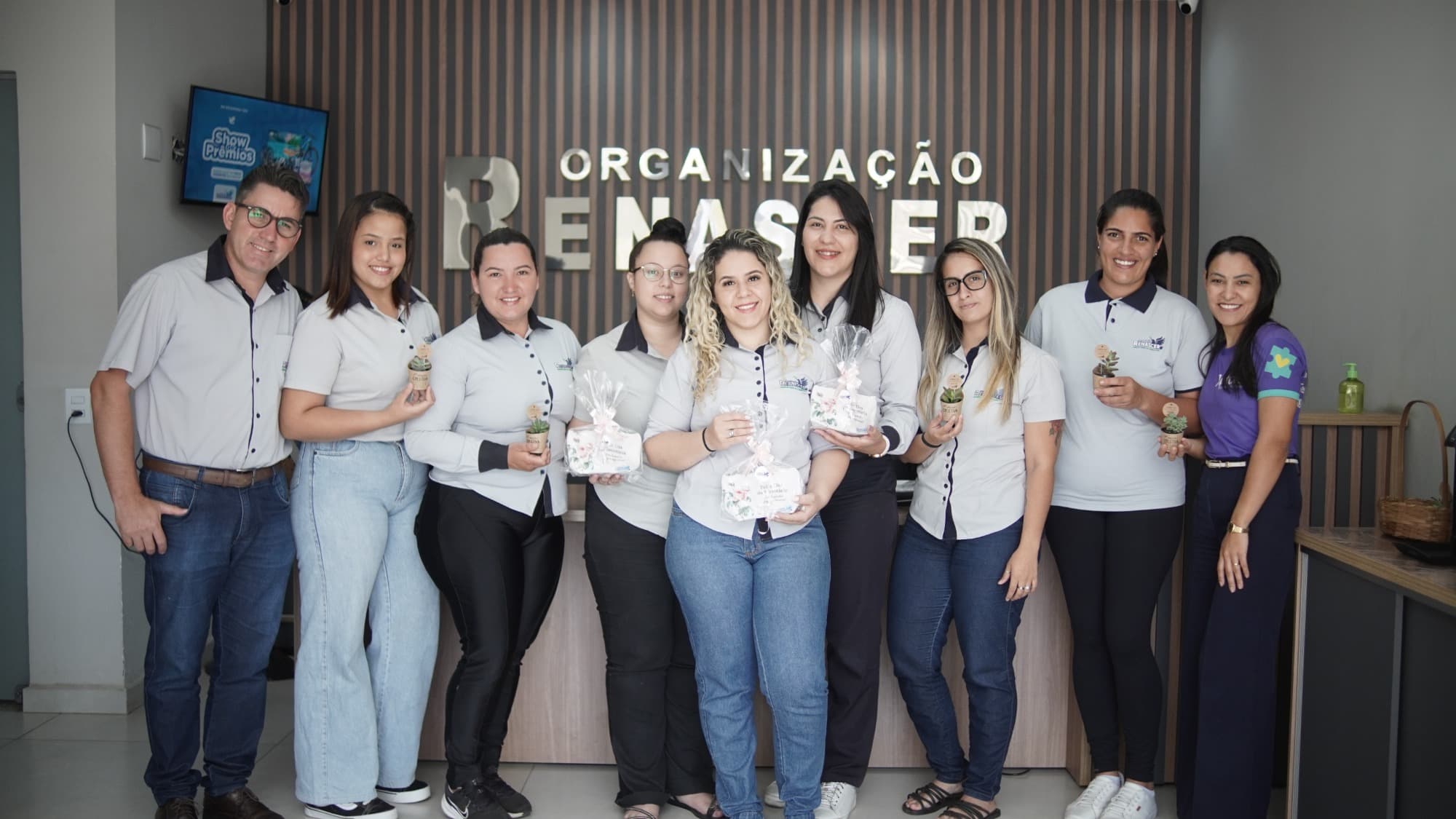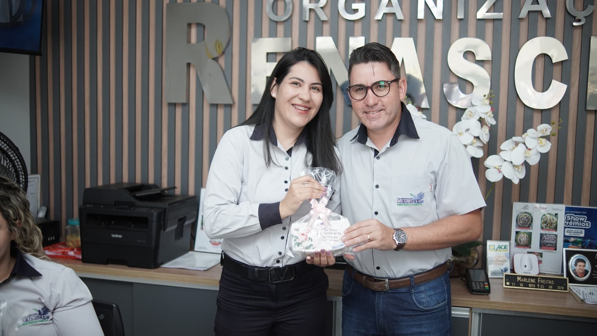 Logo pela manhã, o clima já era de festa. As secretárias da equipe foram surpreendidas com lembrancinhas especiais entregues pessoalmente pelos diretores da Organização Renascer. Mais do que simples presentes, cada lembrança carregava uma mensagem profunda de reconhecimento pelo trabalho dedicado e competente que essas profissionais prestam diariamente no atendimento à população.