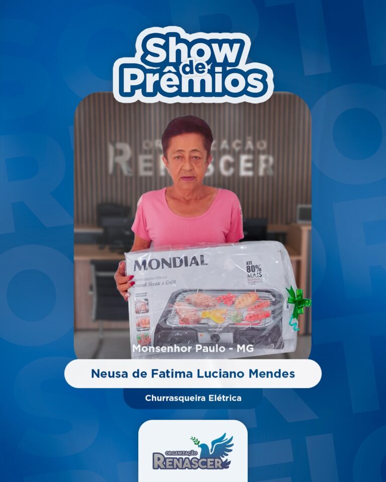 - Neusa de Fátima Luciano Mendes – Monsenhor Paulo/MG → Churrasqueira Elétrica