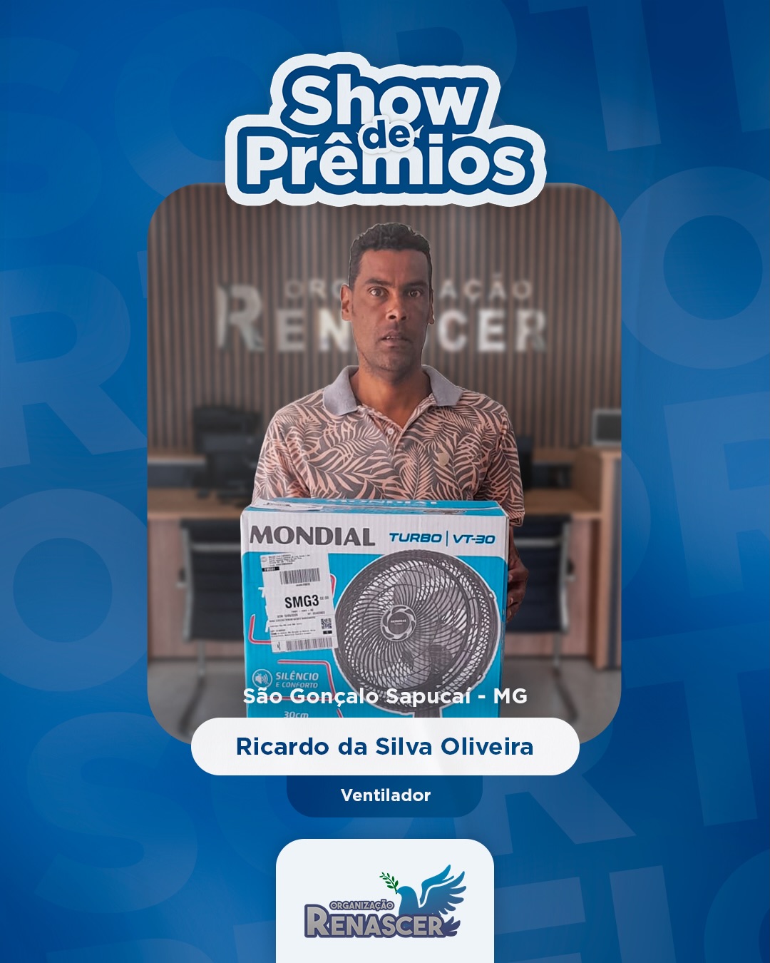 - Ricardo da Silva Oliveira – São Gonçalo do Sapucaí/MG → Ventilador