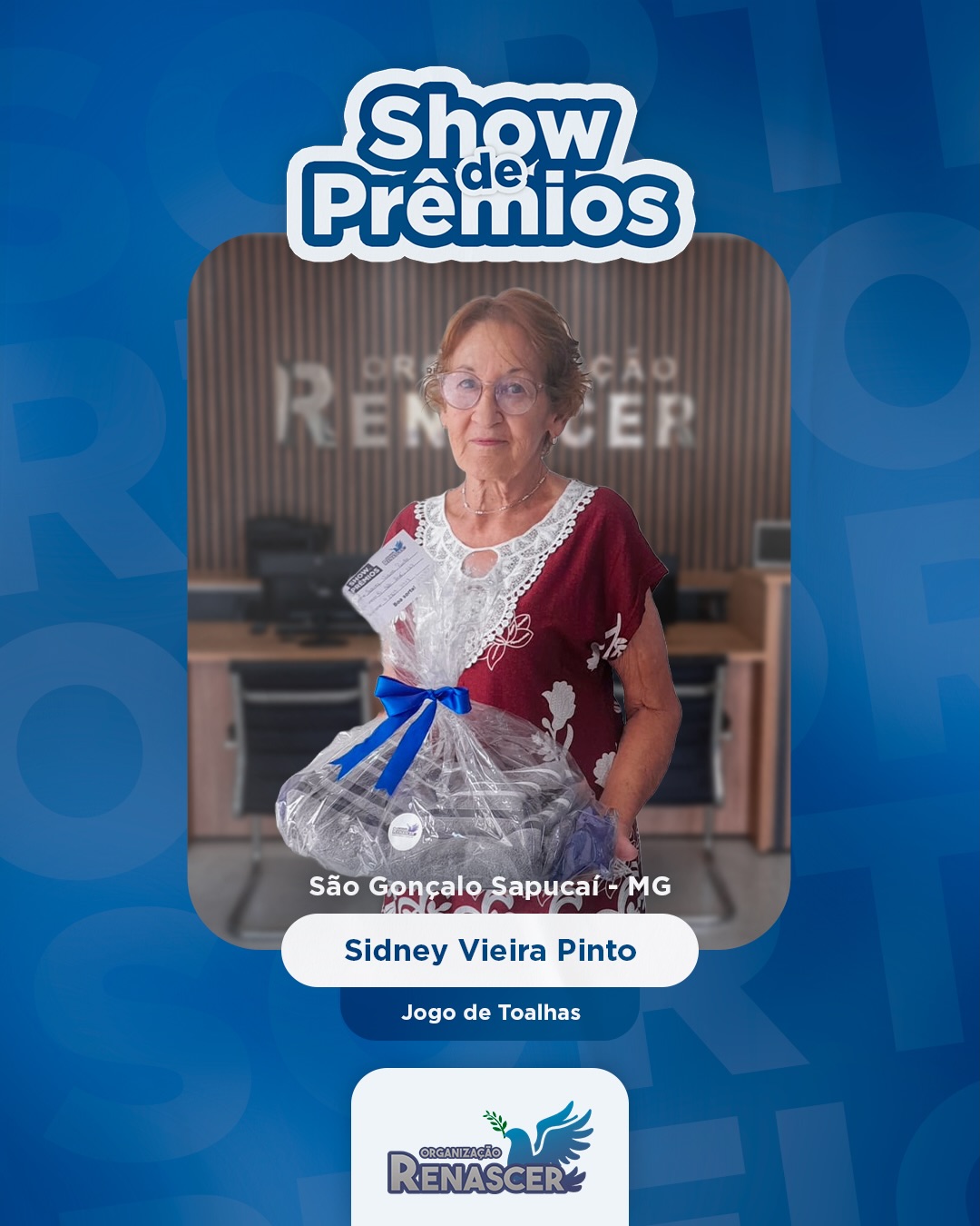 - Sidney Vieira Pinto – São Gonçalo do Sapucaí/MG → Jogo de Toalhas